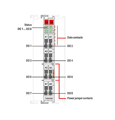 Wago 750-530 8 kanallı dijital çıkış; 24 VDC; 0,5 A (750-530)