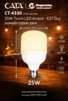 CT-4330B 25W 3200K TORCH LED AMPUL E27 (GÜNIŞIĞI) ÜRÜN ÖZELLİKLERİ ➤ Model: CT-4330 TORCH ➤ Işık Rengi: 3200 K (Günışığı) ➤ Watt: 25 W ➤ Lümen: 1600 lm ➤ Voltaj: 220 V ➤ Duy Tipi: E-27 AVANTAJLARI ➤ Standart E-27 duy yapısıyla kolay kullanım ➤ Yüksek ışık çıkışı ile güçlü aydınlatma ➤ Ekonomik enerji tüketimiyle tasarruf sağlar ➤ Kompakt boyutuyla farklı armatürlere uyumludur KULLANIM ALANLARI ➤ Ev içi genel aydınlatma ➤ Kafeler ve restoranlar ➤ Depolar, garajlar ➤ Uygun armatürlerde genel kullanım Uyarı: Ürününüzü teslim alırken pakette fiziksel bir hasar olup olmadığını kontrol ediniz. Eğer hasar varsa kurye gitmeden 'Hasar Tespit Tutanağı' tutturunuz. Tutanaksız teslim alınan hasarlı hasarlı ürünlerde kargo firmaları sorumluluk kabul etmediğinden, iade ve değişim işlemleri yapılmamaktadır.
